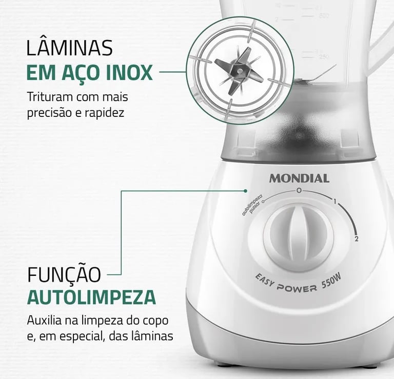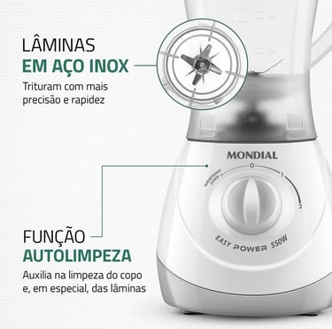 O Liquidificador Mondial Easy Power 550W é ideal para sucos, bolos, tortas e massas!