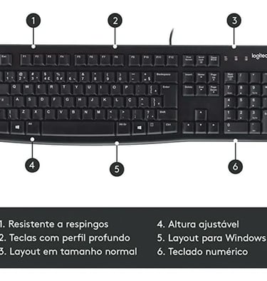Teclado Logitech K120 com teclas silenciosas e padrão ABNT-2.