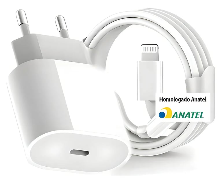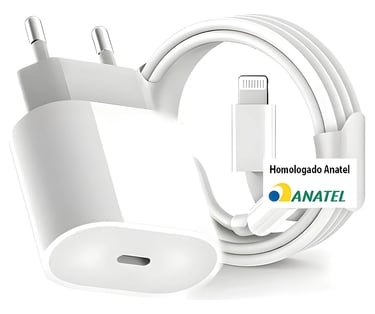A Fonte Carregador USB-C 20W é compatível com iPhone 11, 12, 13 e 14, acompanha cabo e oferece carregamento eficiente em tomada padrão brasileiro. Compacta, prática e ideal para o dia a dia.
